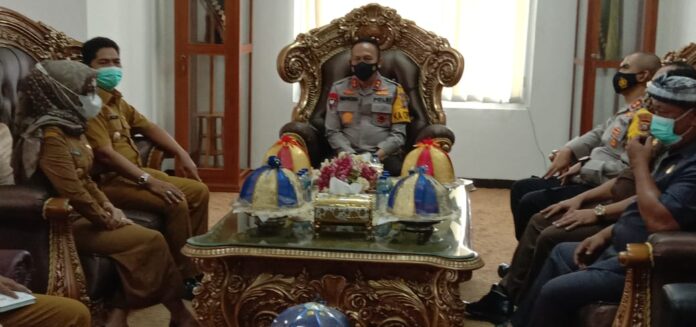 Kapolda Sultra, Irjen Pol Yan Sultra Indrajaya saat berdialog dengan Bupati Buton, La Bakry di Ruangan Bupati Buton di Takawa, Selasa (9/3/2021) (Foto: Rasmin Tara/Terawangnews.com)/
