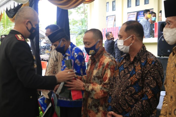 TERAWANGNEWS.com – Kepala Kepolisian Resort (Kapolres) Buton, Sulawesi Tenggara (Sultra), AKBP Gunarko memberikan cendera mata kepada 6 orang Purnawirawan Polri.