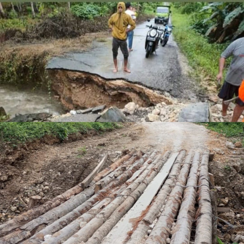 Warga kuatir, jika tidak secepatnya diperbaiki, jalan itu akan ambruk lagi, karena jembatan darurat yang dibuat sementara itu dari batang kelapa.