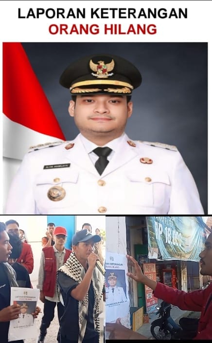 Dalam aksi itu, Mahasiswa juga membawa serta foto Bupati Buton, Alvin Akawijaya Putra yang bertuliskan “Laporan Keterangan Orang Hilang”.